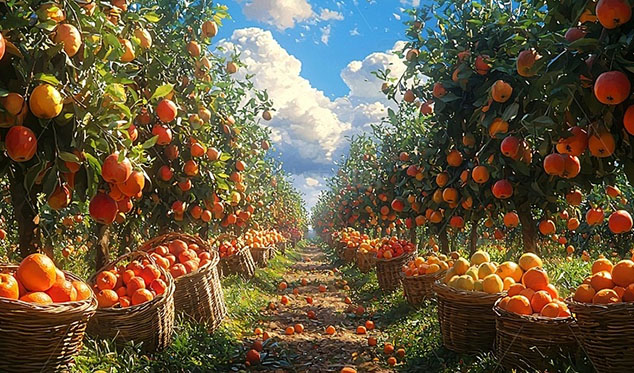 基地以苹果、橙子、梨、橘子等为主栽,推行标准化建园、生草覆盖、滴灌水肥一体化、病虫害绿色防控等关键技术,配套质量追溯体系与采后分级包装,实现稳产、提质、控损,打造可复制的绿色高效生产样板。